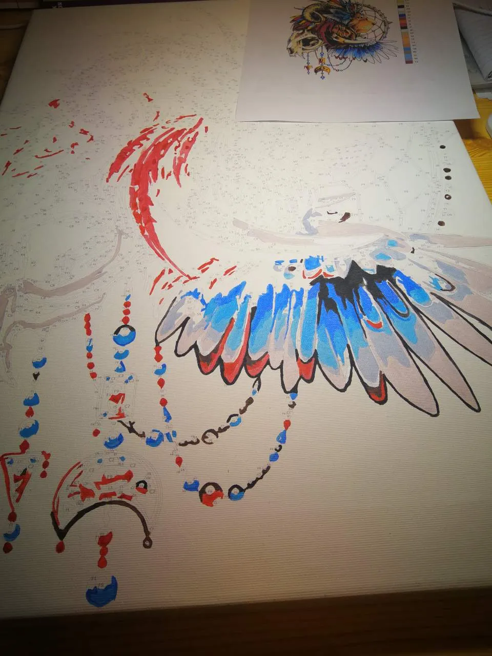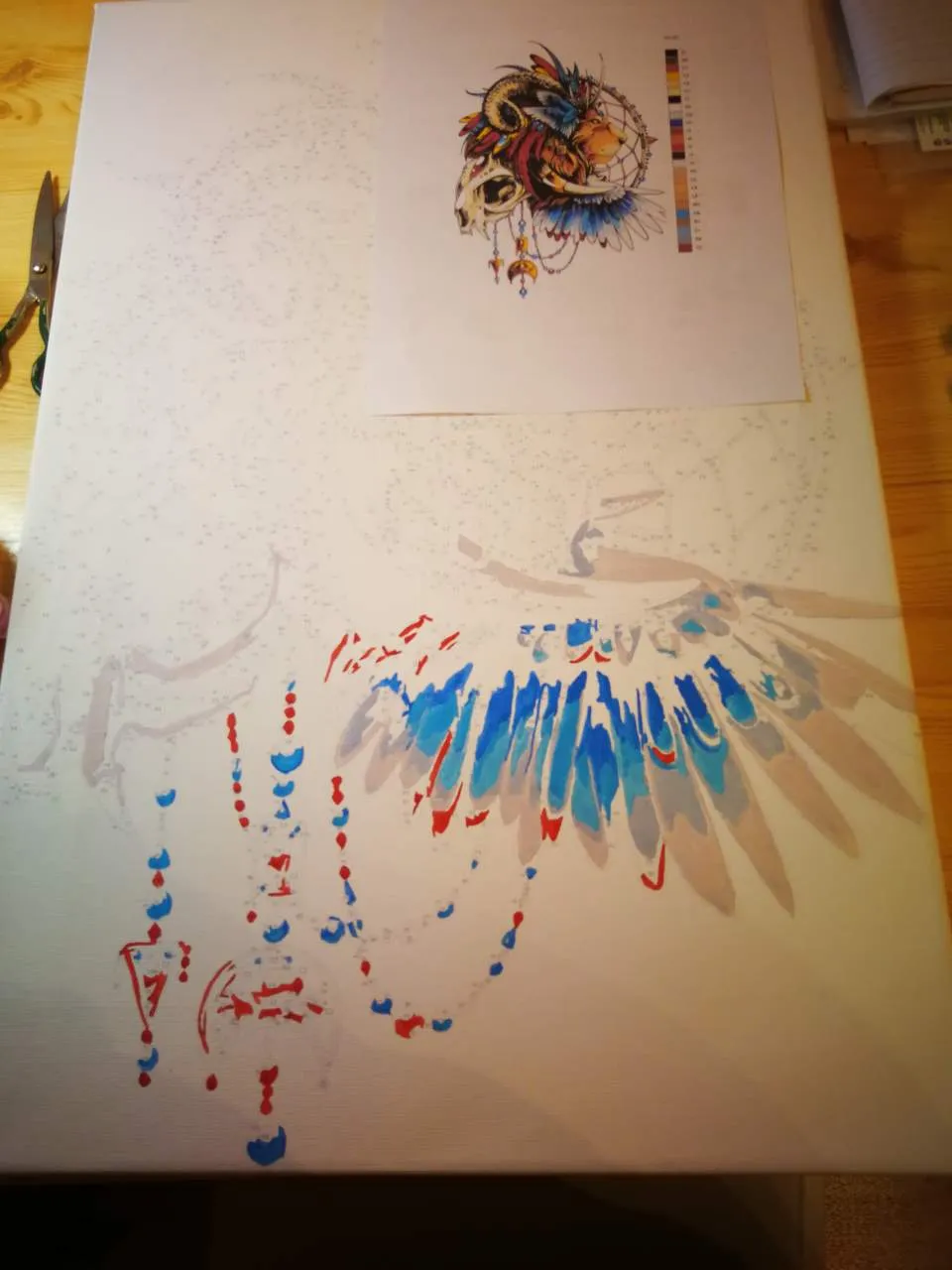 Obraz přišel během 14 dní a já mohla začít. Byli k tomu rovnou přibalený štětečky, barvy a vzor.