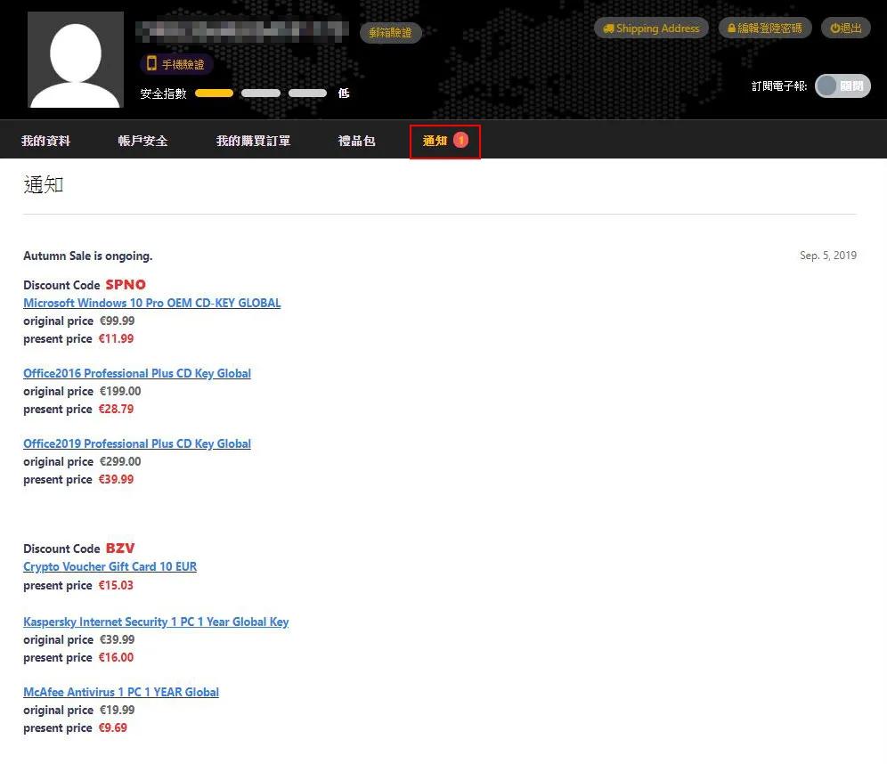 再回到首頁後登錄,在通知底下可以看到一些折扣碼,萬一你看到這篇文章時,贈送Windows 10的促銷已經結束了,還是可以用這些折扣碼買到便宜的軟體。