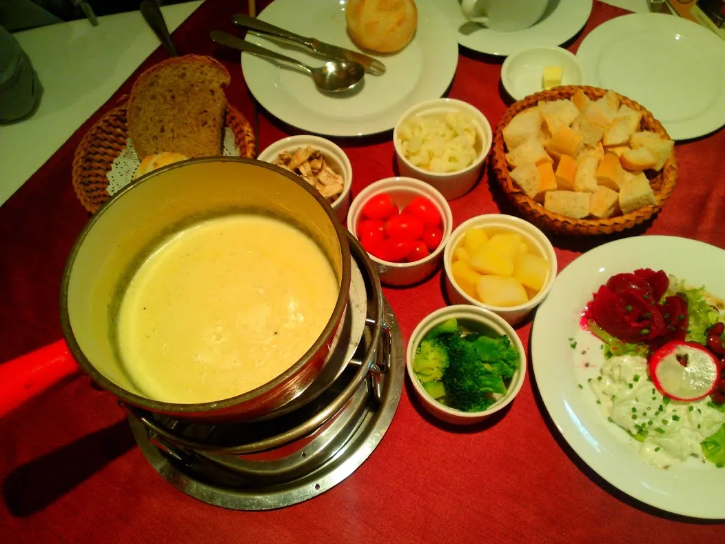 A swiss(?) cheese hot pot! very interesting for us. Not sure if it is still there after all these years.