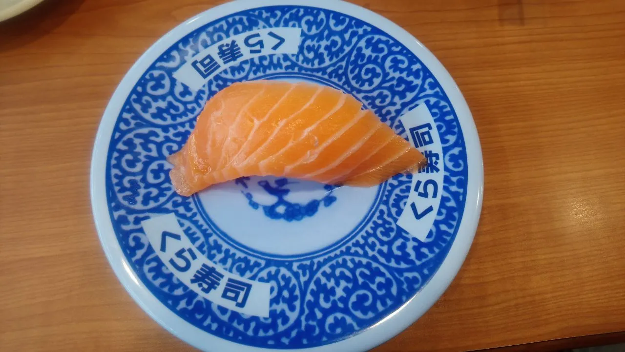 畫面這一盤是鮭魚壽司,單獨一貫,看起來很有氣勢,拍起來也好看。