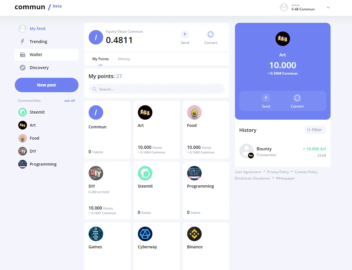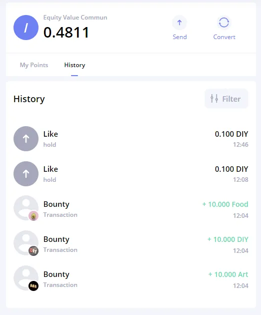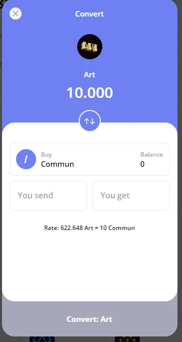 这些Points相当于这些社区的代币。如果你想把这些Points转换成COMMUN,只需在钱包里选择社区,然后点击转换按钮,就可以进行转换。