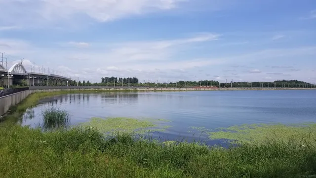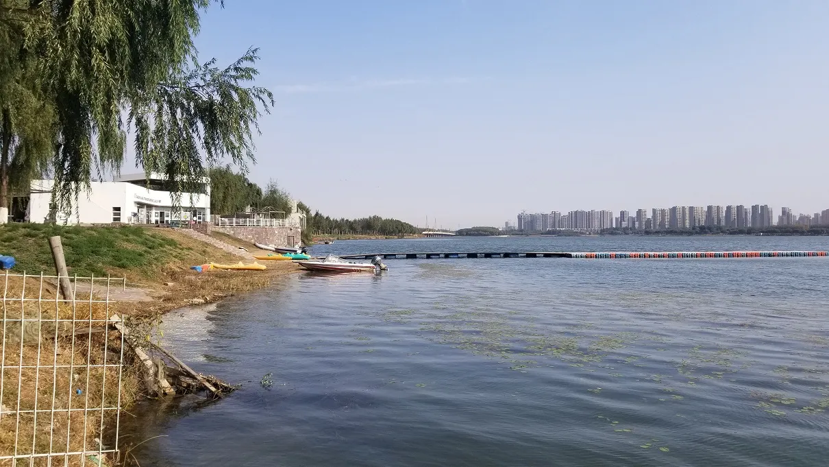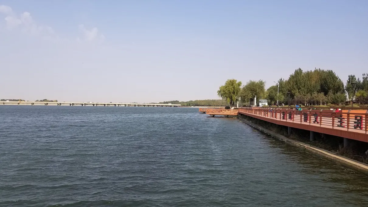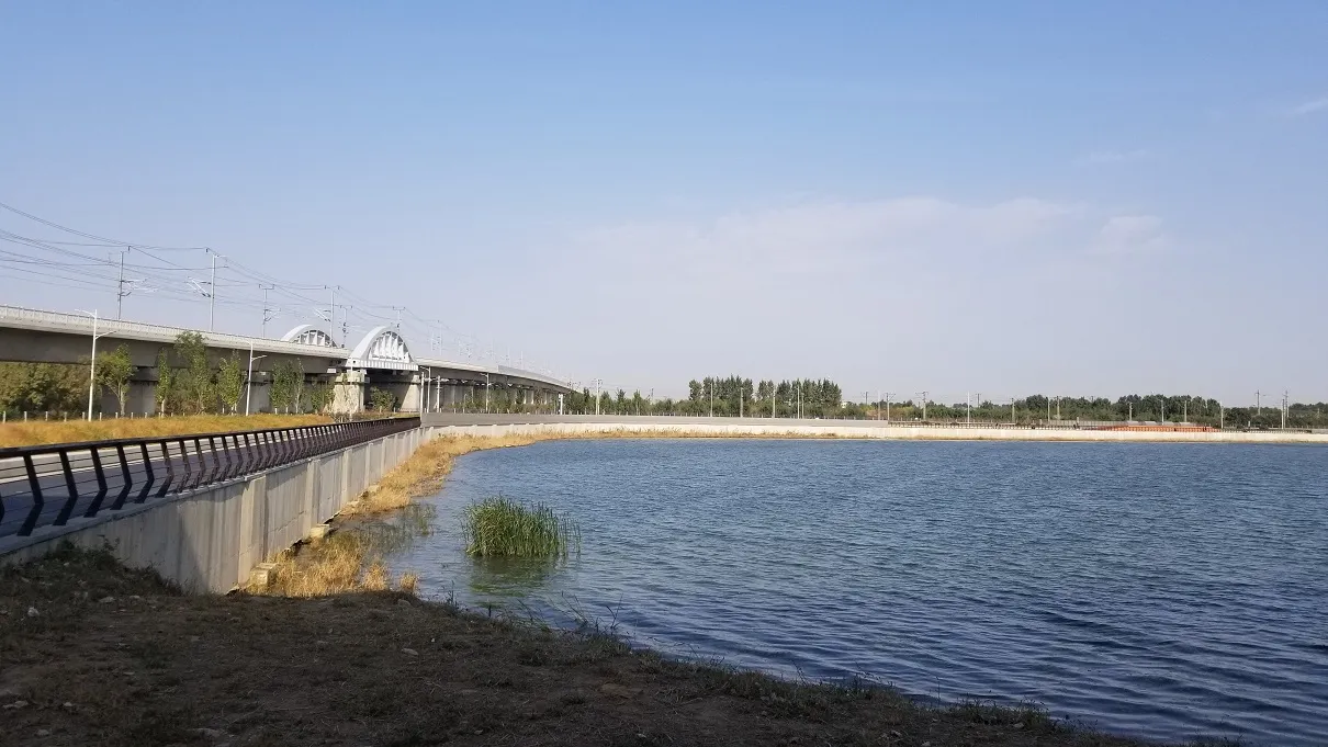 看了一下,天空基本上还是那么蓝,水面也还是那么开阔,火车道什么的也没有什么变化。