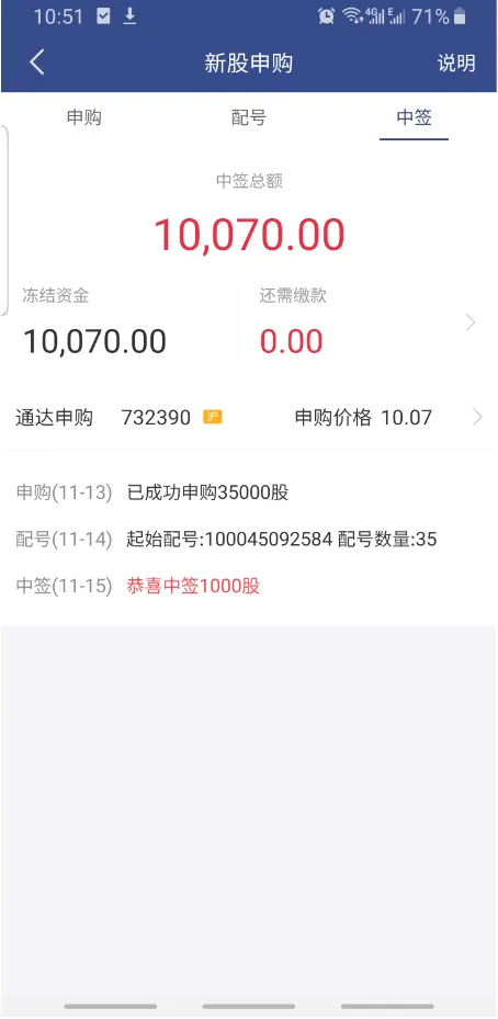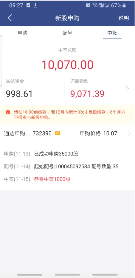 中了新股还需要补交申购款,哎,一笔不小的数目