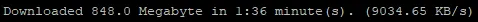Downloaded 848.0 Megabyte in 1:36 minute(s). (9034.65 KB/s)