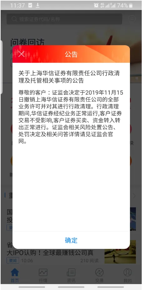 我擦,这是什么鬼,撤销上海华信证券有限责任公司的全部业务许可并对其进行行政清理,听起来很严重的样子,券商会不会跑路,我的资产有没有风险?