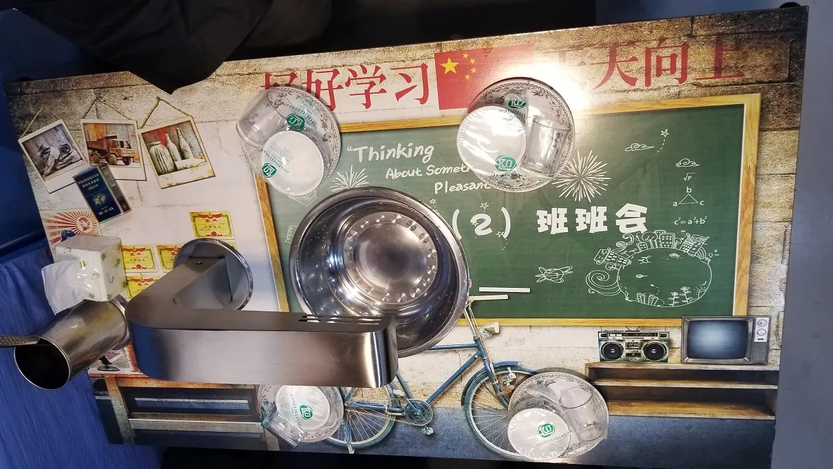 桌子上的图案,不过好好学习是学习如何吃肉喝酒吗?哈哈哈。