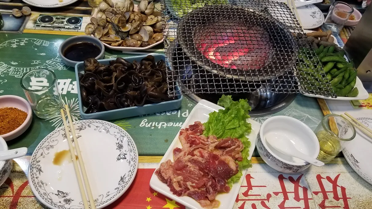 比较有特色的地方是桌子和椅子的腿都比较短,这样坐着吃肉、喝酒、聊天,好像更有意思吧。