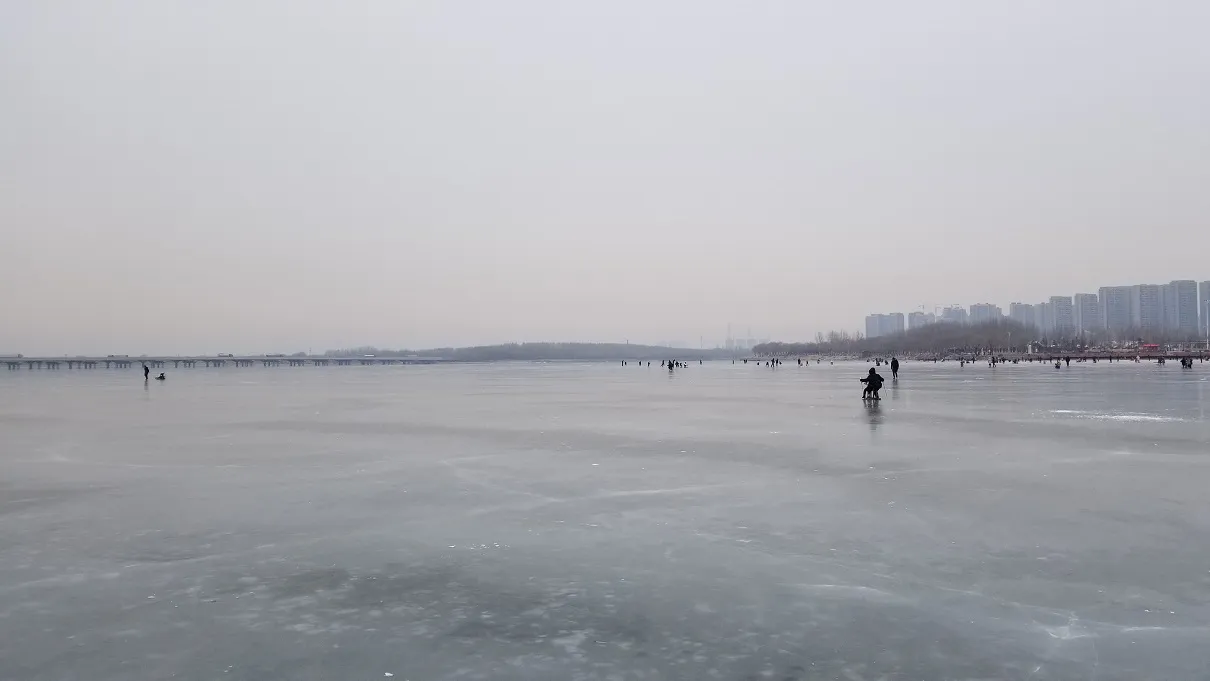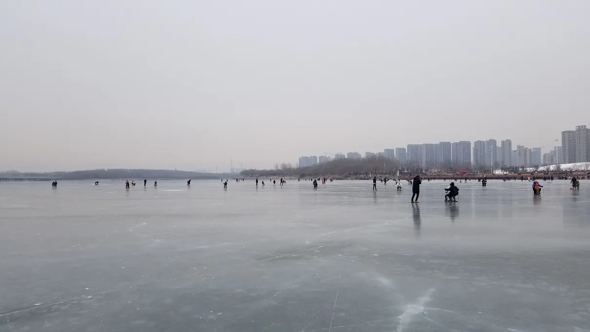 这么好玩的娱乐场所当然不能被放过,所以每逢周末好多人来这里滑冰车、抽冰嘎、或者就是简简单单地在冰上打个出溜滑,都是非常好玩的。我还看到有父子俩在冰上踢足球,真是会玩。