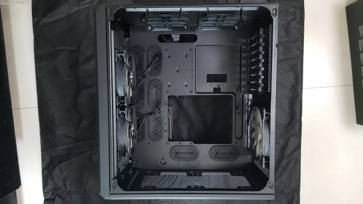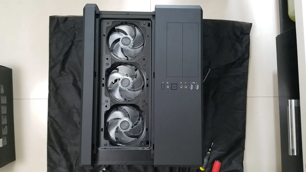把机箱原来的风扇该到顶部,前边换了一组三个一体的风扇。