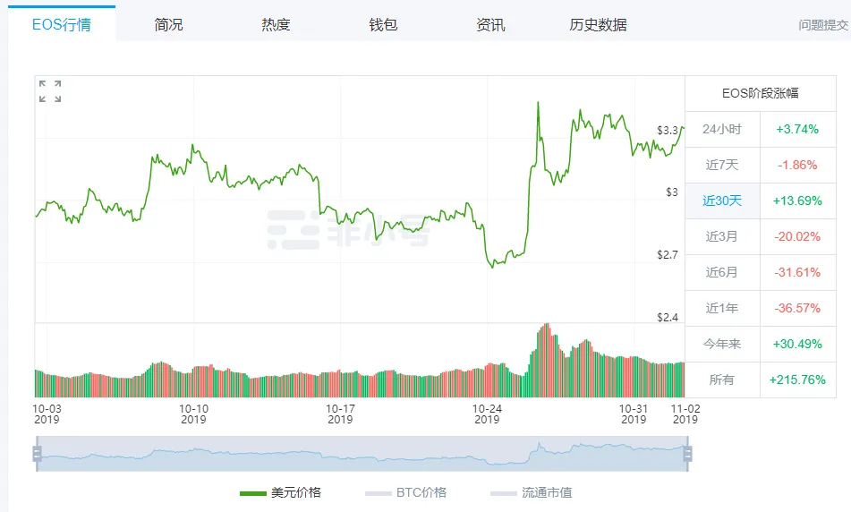 从非小号的数据上看,EOS最近30天的价格可谓波澜起伏。