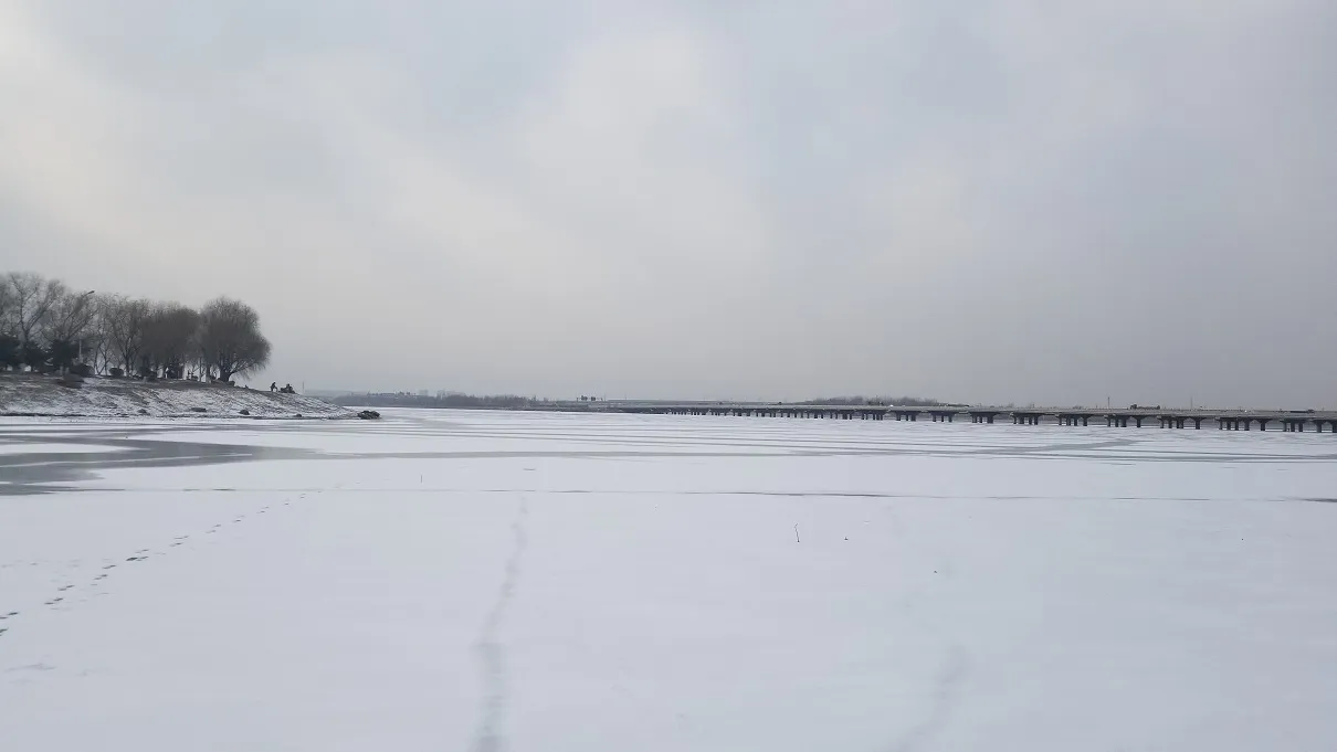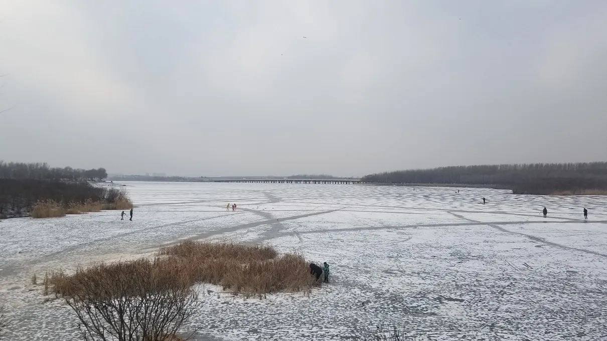 站在湖中间,看着积雪覆盖的白茫茫的冰面,真有一种自己在大雪原的感觉呢。