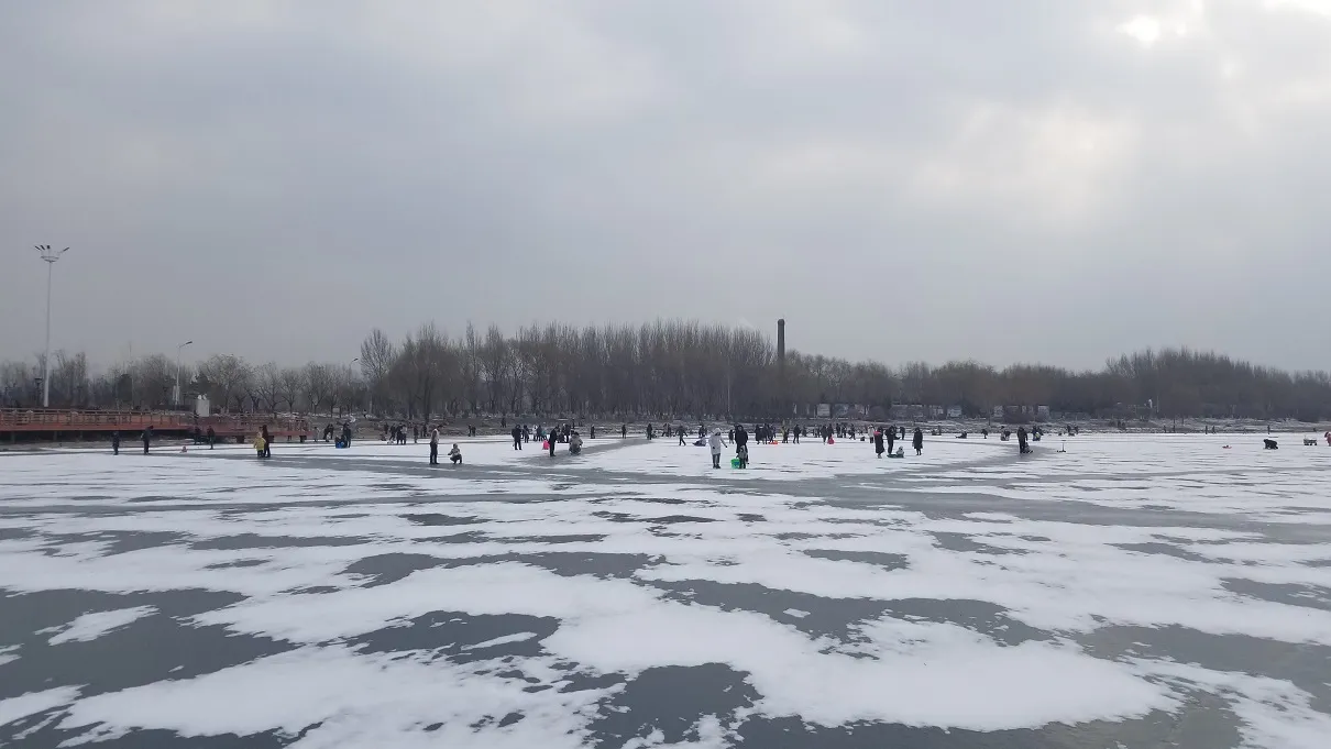 去丁香湖,发现冰面已经冻得足够厚实了,好多人在冰面上玩,于是也去冰面上体验了一把。