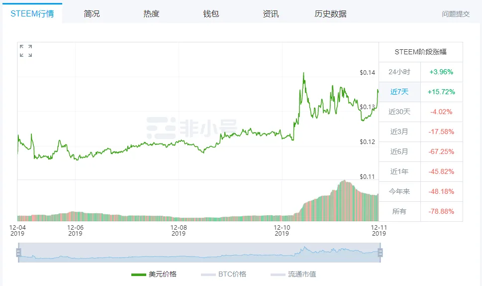 毕竟在最近市场一片低迷的情况下,这周STEEM逆市上涨了15%以上,还是很不容易的