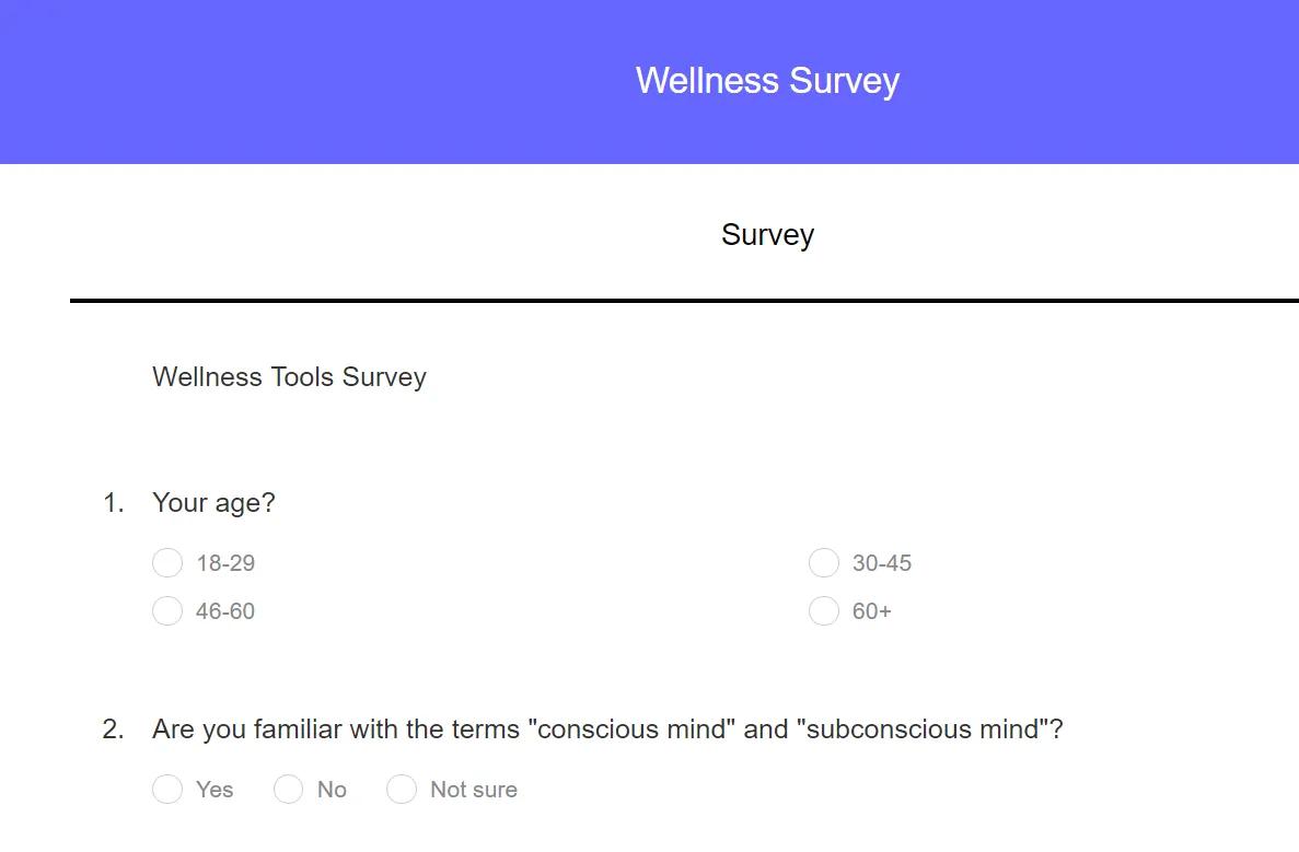 I am asking for your inputs regarding a short survey I am making on the issue of wellness and the tools that are available for us to solve the problems we have in life.