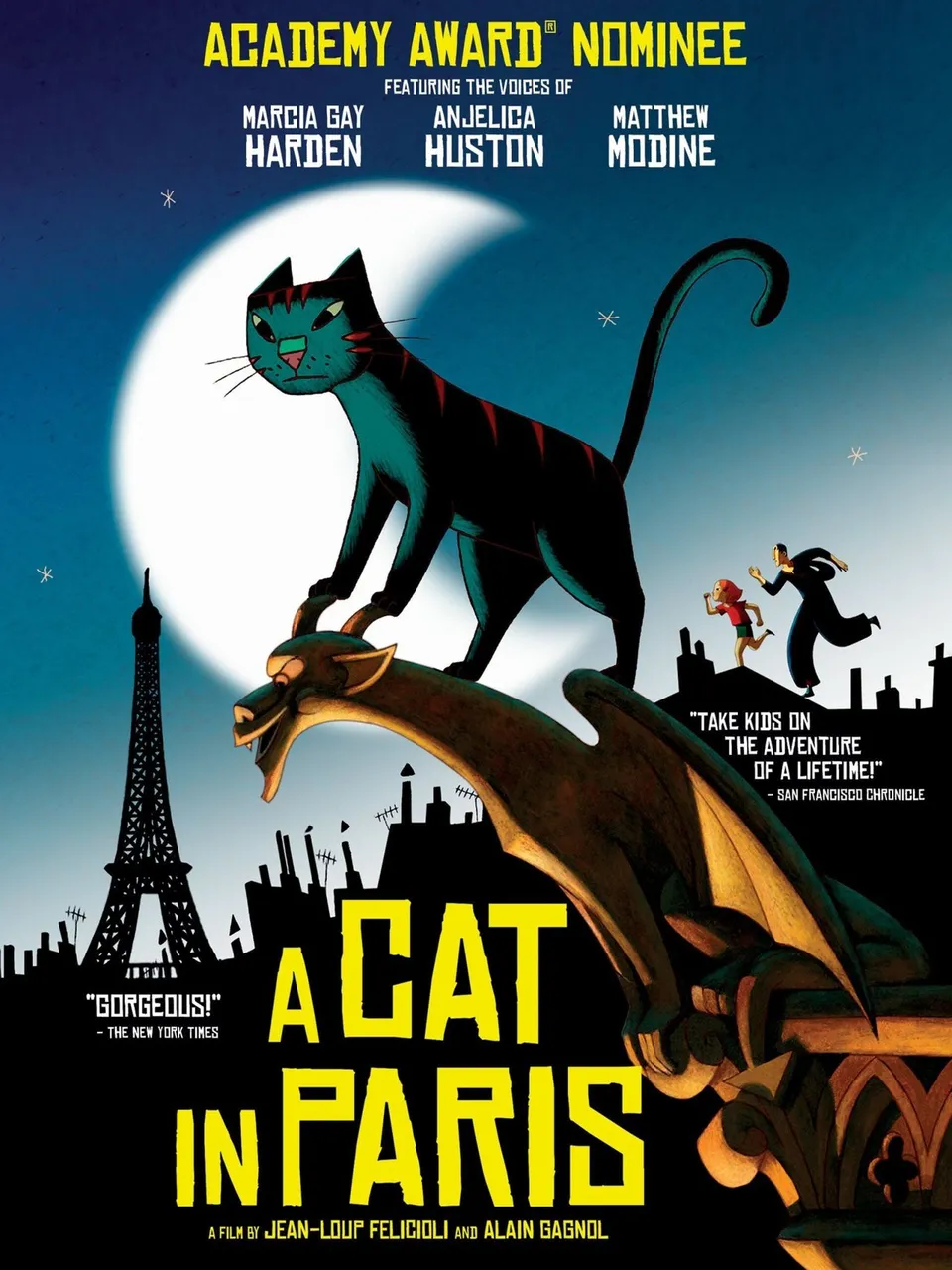 In A Cat in Paris, a French animation, Dino, who lives a dual life, lives with sweet owner Zoe and her mother in the daytime and assumes the role of Nico, a thief at night. Zoe embarks on a dangerous investigation and as a result falls into the hands of gangsters, mixing Dino's two lives together and leading them on an adventure through the streets of Paris.