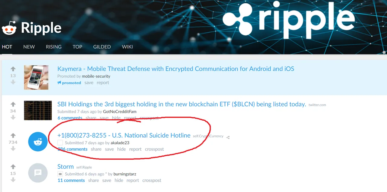 Quando Ripple/XRP (ma è successo con quasi tutti i coin), è crollato da quasi 4$ a 1$ nei primi giorni del 2018, è comparso questo post su reddit per aiutare chi aveva comprato grosse quantità di XRP ad un prezzo elevato (ad esempio, 3$), convinto che il coin avrebbe continuato l'impennata, per poi essersi trovato sul lastrico. Sembra un messaggio satirico ma invece è serio: in quell'occasione si sono registrate un gran numero di chiamate alla hotline di persone che volevano suicidarsi per aver perso tutto ciò che avevano. Ed in giro si è letto di persone che, per approfittare dell'impennata, hanno fatto debiti o si sono venduti auto e case per investire tutto e sfruttare l'occasione. Investite con estrema cautela sopratutto se siete all'inizio!Il miglior momento per investire nelle criptovalute è ieri, ed oggi.
