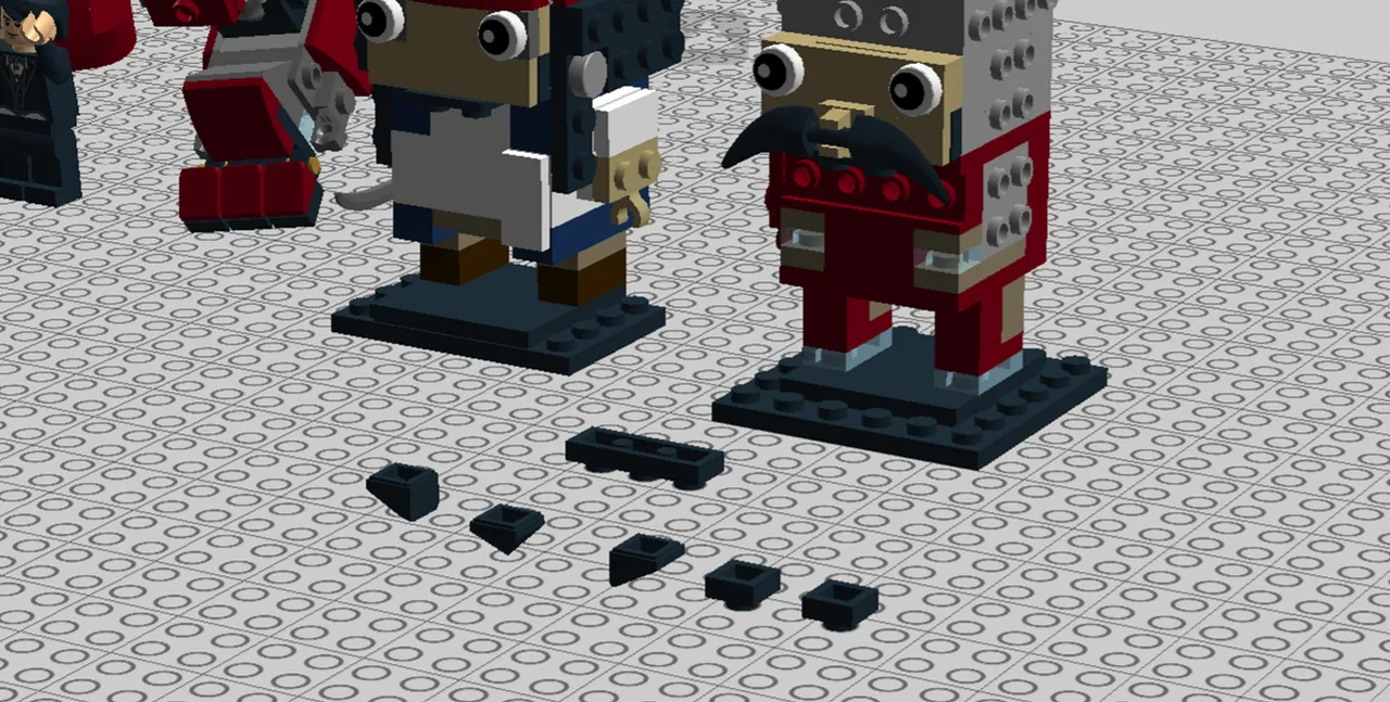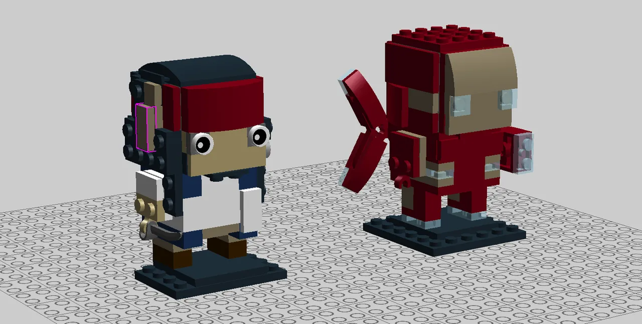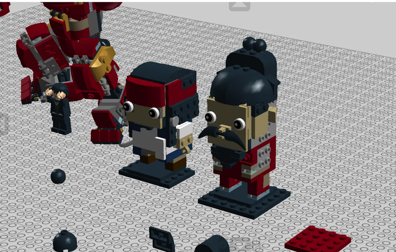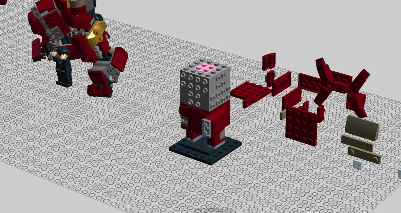 주변에 다른 제품도 가져오면 여러가지 브릭들을 옆에서 바로 가져다 쓸 수 있으므로 상대적으로 대형 제품 하나도 불러다 놓습니다. 이제 두 브릭헤즈중 용포와 비슷한 빨간색 옷을 입고 있는 아이언맨을 BASE로 작업을 시작해봅시다!! 그러려면 헬멧을 다 벗겨버려야 하겠죠? ㅎㅎ