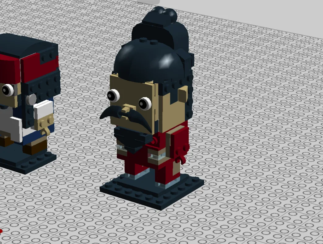 머리를 Base 상태로 벗겨놓고 먼저, 눈코입 얼굴부터 만들어보겠습니다. 가만 보니 잭스페로 눈과 피부를 그대로 이식해와도 될 것 같죠? 가져와봅니다! 그리고 좌측 수천가지의 브릭들 중에서 수염을 표현할 적절한 브릭을 찾아옵니다. 두 친구 앞에 가져다 놓은거 보이시죵?
