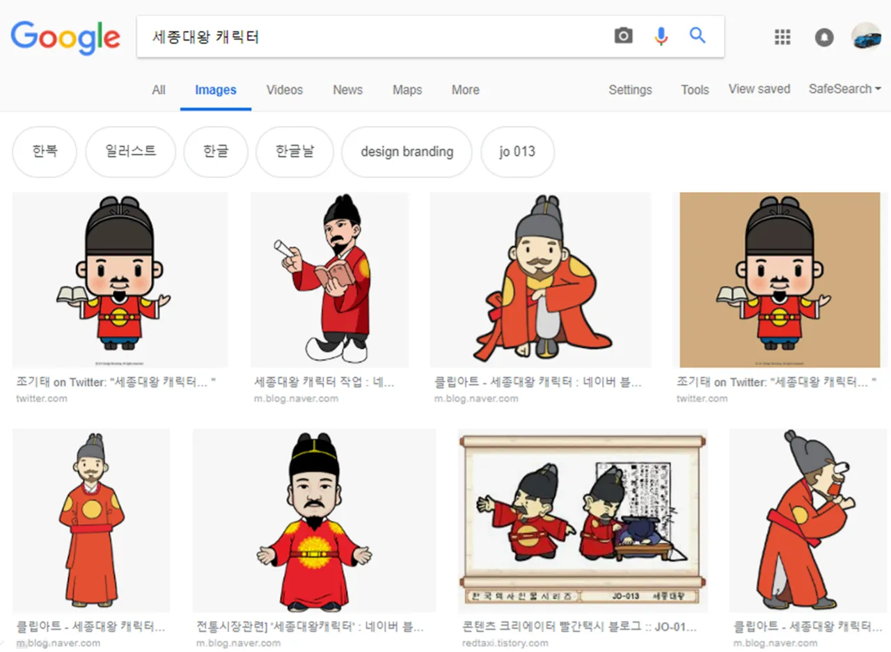 우선 구글에서 "세종대왕 캐릭터"라고 검색해서 참고할 도안을 찾아봅니다. 음 가장 첫번째 캐릭터부터 참고하기 적절한 이미지가 검색됐군요! 그리고 주섬주섬 제가 가지고 있는 브릭헤즈 실물 제품들을 꺼내봅니다. 컴퓨터 앞에서 LDD 캐드로 창작하는 것이지만 레고 실물을 동시에 만지면서 해야 아이디어도 잘 떠오르고 작업 효율이 납니다!