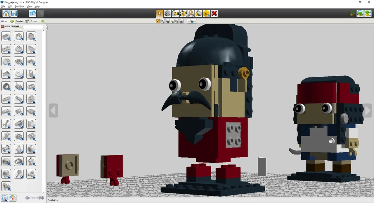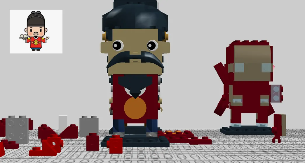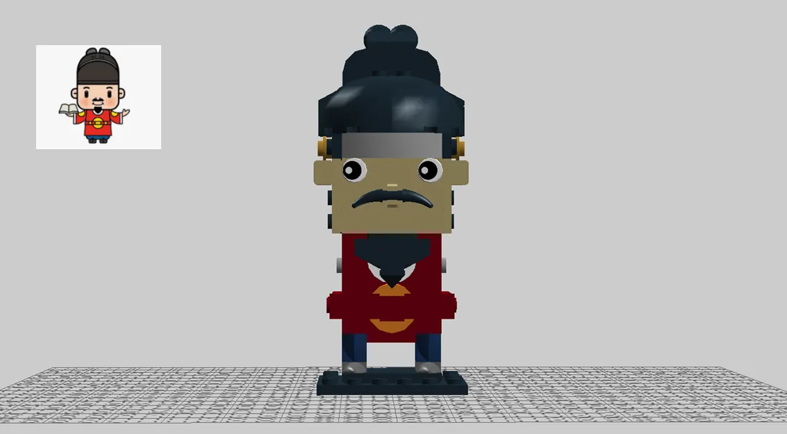 우선 지난번과 마찬가지로 구글 검색한 "세종대왕 캐릭터"라고 도안을 참고해서 몸통도 만듭니다. 이 중 가장 첫번째 캐릭터를 참고하기로! 창작 작업할 떄는 가지고 있는 실물 제품들을 꺼내야 합니다. 컴퓨터 앞에서 LDD 캐드로 창작하는 것이지만 레고 실물을 동시에 만지면서 해야 아이디어도 잘 떠오르고 작업 효율이 납니다!