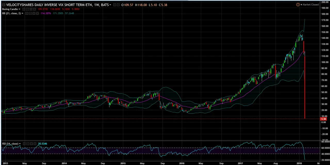According to MarketWatch.com, Credit Suisse said their popular exchange-traded note, XIV that was designed to bet against rising volatility will be liquidated on Feb. 21 after XIV lost more than 80% of its value in after-hours trading, triggering a technical liquidation, or "acceleration" event.