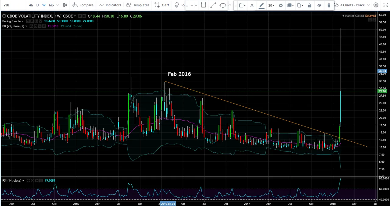 Interest rates have an inverse correlation to bond yields. The yield on the 10-year U.S. bond shot up to 2.84% after the jobs report, reflecting higher expectations of more rate hikes. The increase in yields spooked the stock market. Prior to the January job announcement, The Big Boys were shorting market volatility using margin. Margin is basically getting a loan to buy securities. When you buy securities on margin, you must repay both the amount you borrowed and interest, even if you lose money on your investment.