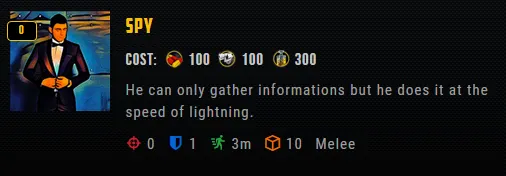 This the unit intended to check how your enemies look like. If your opponent happens to have any units, they will fight the Spy (except if they have only Spies).