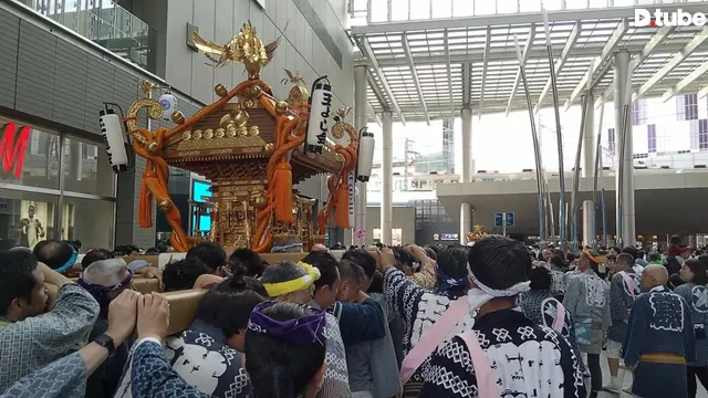 Carrying the Mikoshi walking though Futakotamagawa Station.