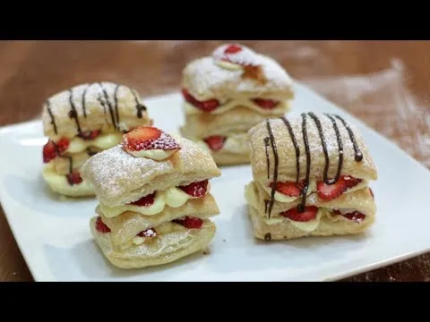 In this episode of In the Kitchen with Matt I will show you how to make Napoleon. This is an easy homemade strawberry Napoleon made from a puff pastry. What is a Napoleon Dessert? It is a traditional French dessert similar to but slightly different then Mille-feuille. It consists of layers of flaky puff pastry filled with some kind of pastry cream and then the top is decorated as well. There are so many variations that you can do. This one is super easy to make if I can do it, you can do it. Let's get baking!