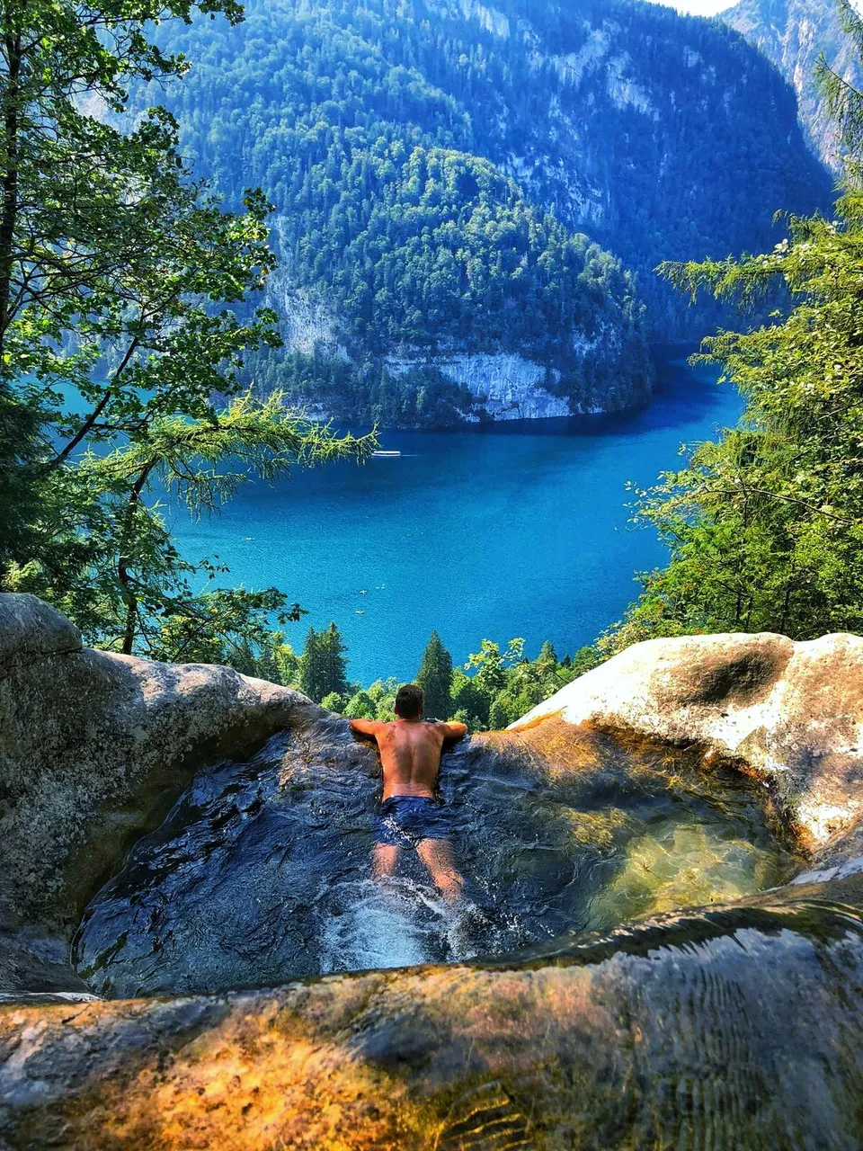 An sommerlichen Tagen findet man die magische Örtlichkeit mit Sicherheit nicht alleine vor. Seit geraumer Zeit wird der Wasserfall aufgrund seiner “instagramability“ regelrecht gestürmt, wie mir ein Einheimischer erzählte. Solltet ihr einen Ausflug zum Königssee planen, so empfehle ich euch am besten einen Tag unter der Woche zu wählen und eventuell schon in den Morgenstunden aufzubrechen. In die Becken kann man übrigens auch reinsteigen und eine kleine Runde plantschen. Das Wasser ist natürlich sehr frisch, doch für ein spektakuläres Bad im „Natural-Jacuzzi“ sollte man den kalten Wassertemperatur ausnahmsweise einmal trotzen.