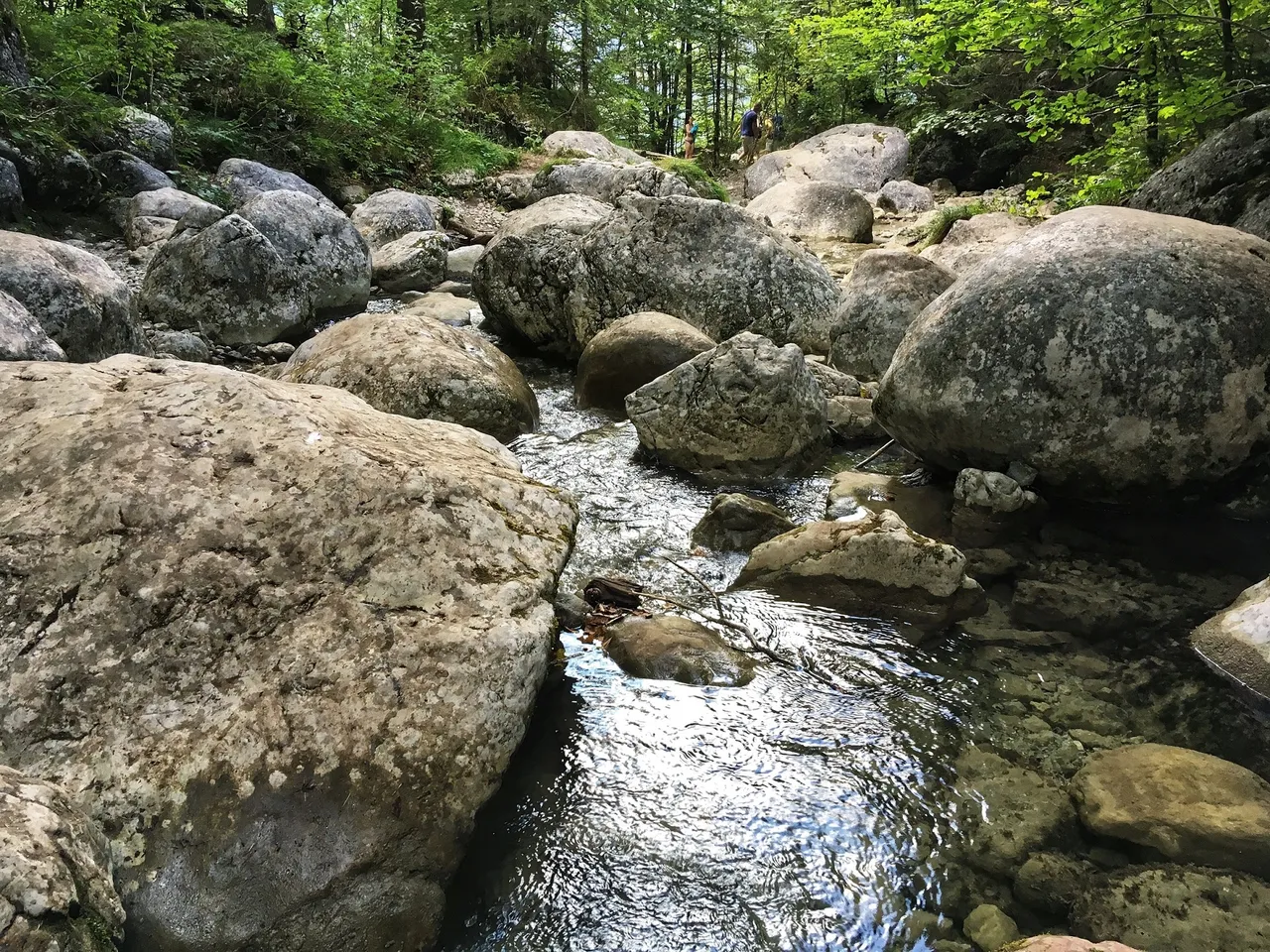 Das glasklare Wasser schlängelt sich über Stock und Stein