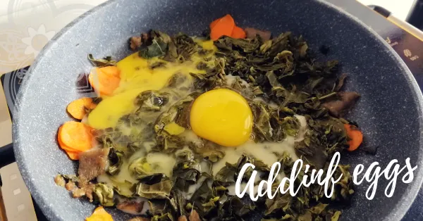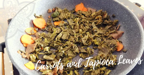 I finely shredded the cooked leaves and set the pan to heat up. As I know that these leaves pretty much serve no extra nutrients except the high fiber (because it was pre-cooked) I have added freshly sliced carrots into the mix.