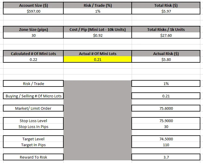 Because price has been making higher highs and higher lows, this is a counter-trend trade. The trade set-up is offering at least a Reward to Risk ratio of 3:1.