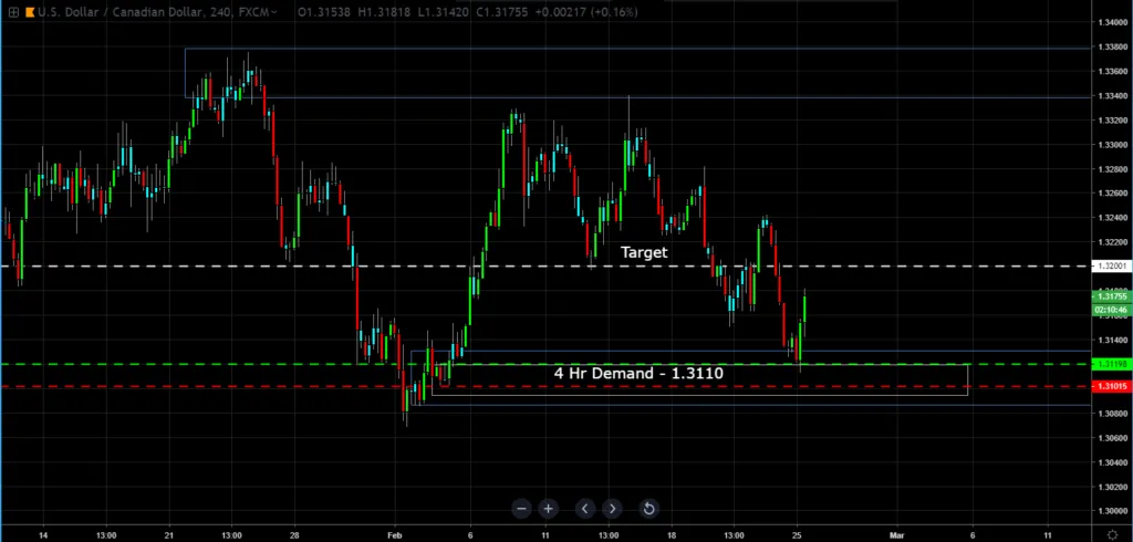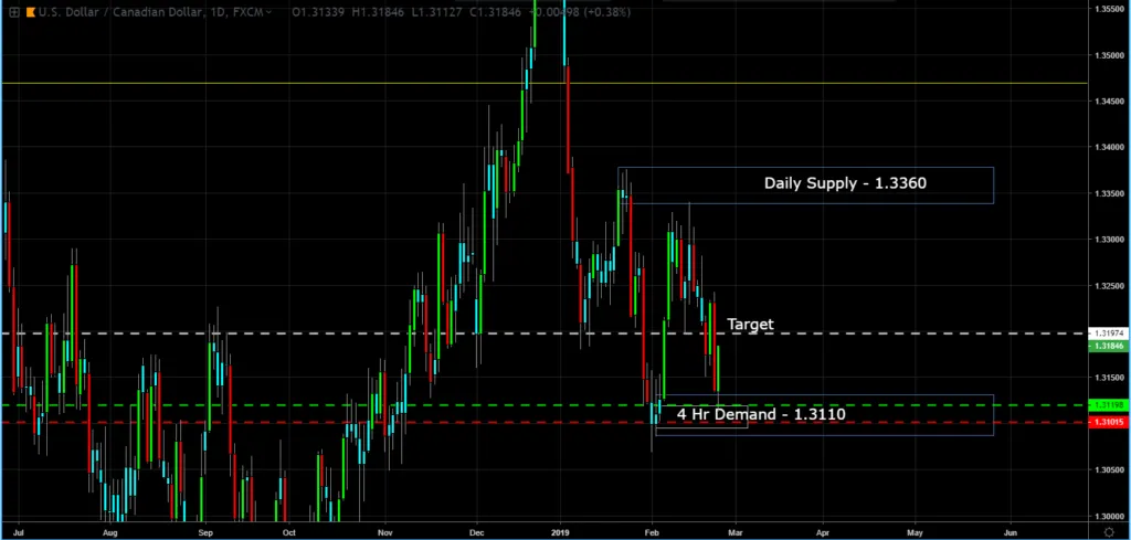What I like about the 4 hr demand zone is it's embedded within a daily demand in which buyers stepped in at the whole number of 1.3100 and prices rocketed to daily supply at 1.3360 before return to the origin of the strong move.