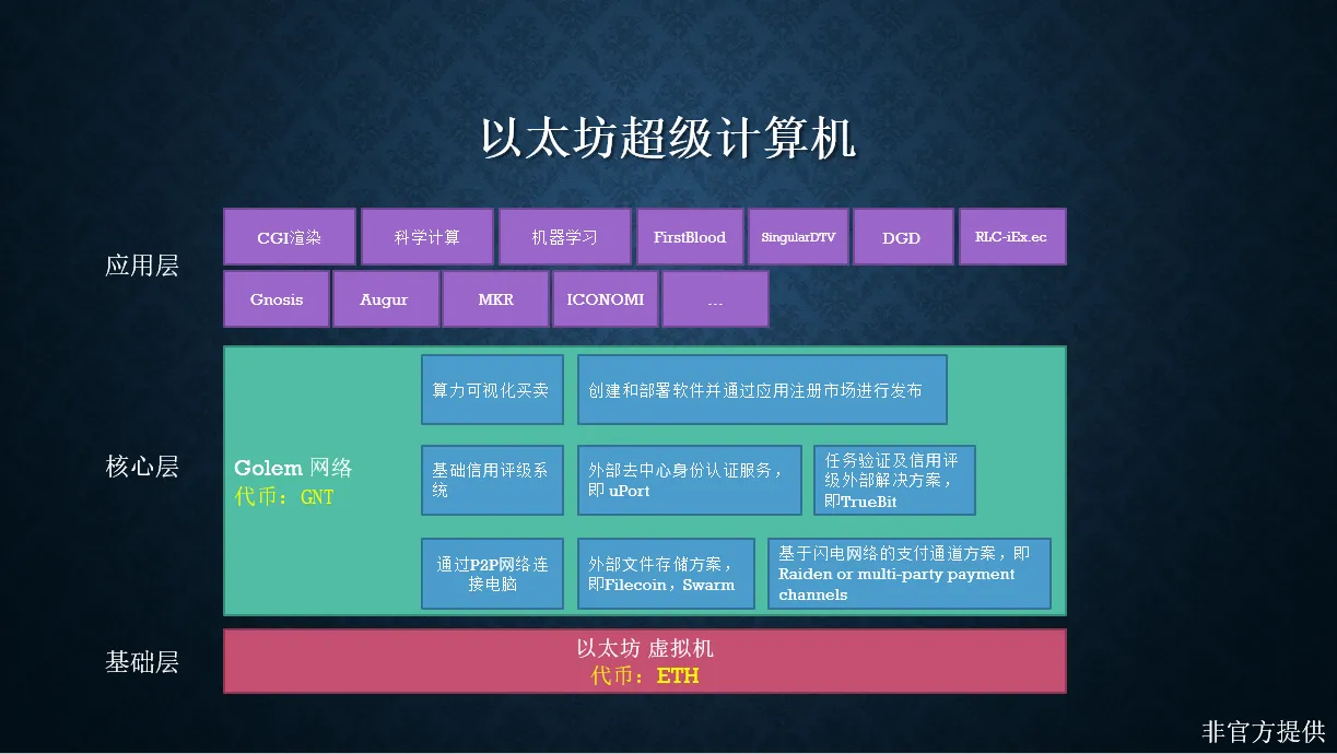以太坊(Ethereum)是一款能够在区块链上实现智能合约、开源的底层系统。Golem是基于以太坊区块链的去中心化算力网络。Golem项目概览宏大愿景和核心特征
