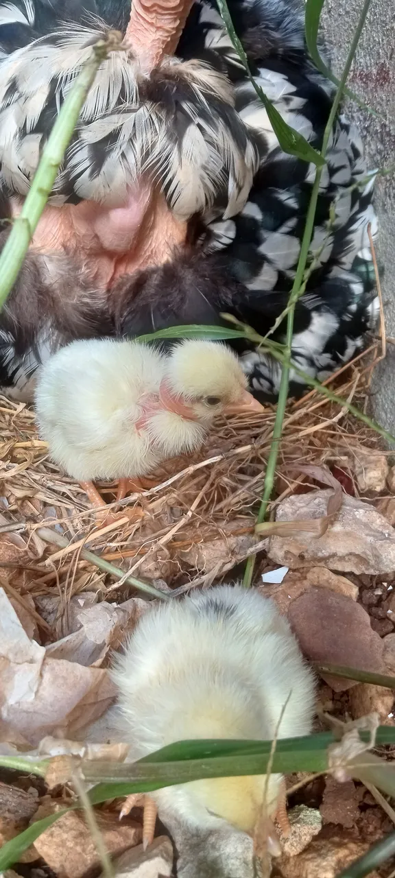 It's been a while since I've posted on Hive. Sometimes I just don't have many ideas to write; I'm working on some drafts. But anyway, here I am, and I wanted to share that my chicks are now a month and a half old and have grown quite a bit. I don't use artificial incubators here, which would be a great advantage, but the hens themselves incubate the eggs for 21 days. During this time, they rarely leave the nest, only when they are very hungry and thirsty. They turn the eggs over, which prevents the embryo from sticking to the membrane or shell, and also ensures that the heat is distributed evenly. When the chicks were a month old, I thought most of them would be male, but now that they're older, I realize that's not the case. On the contrary, everything seems to indicate that most are female. And that's good because it means that in the future I'll have a larger egg harvest and it can be a source of food and income.