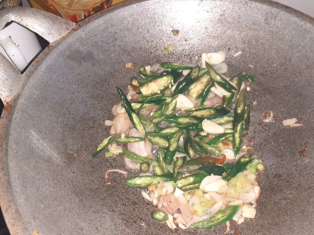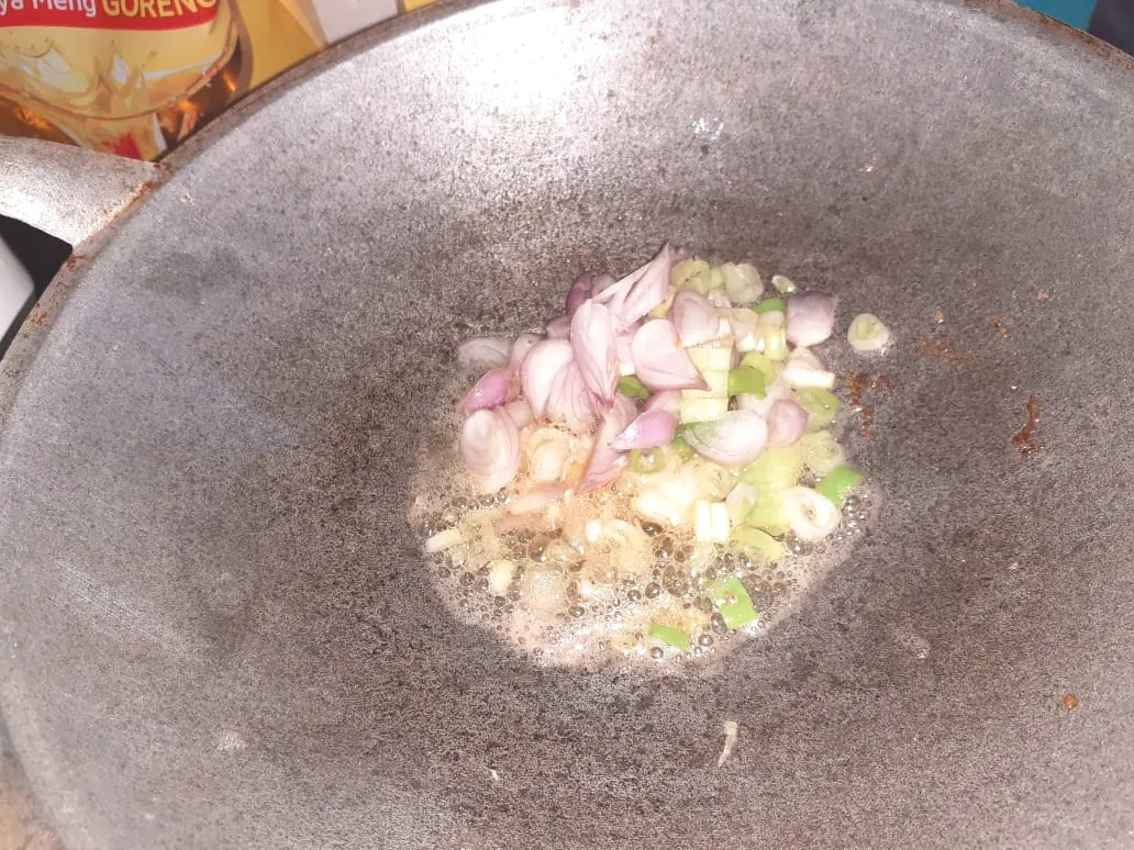 If you can smell the fragrant, add the chili and garlic then stir or mix them until withered. The last, add tomato and stir stir it! It's about 1 minutes then add the water.