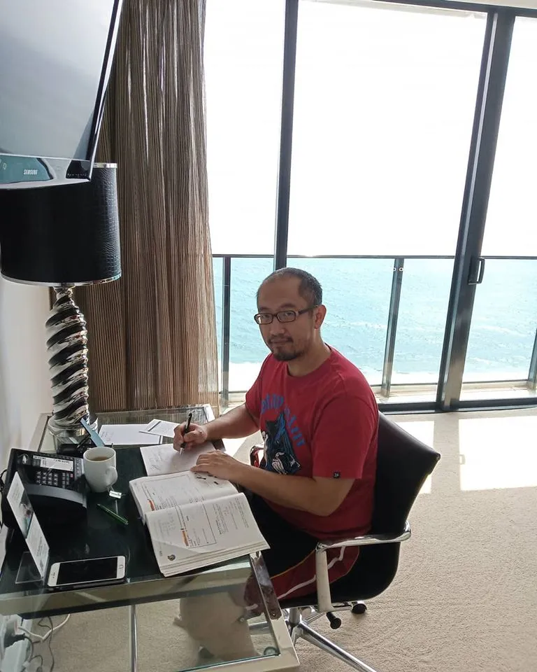 以上是我在黃金海岸五星級旅館讀課本的照片。
