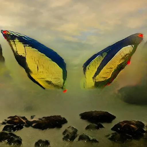 This time, I decided to go with Wombo Dream. From this generative art program, I utilized the following text input to retrieve my vision of a background that would complement wings, given the dark yellow and black, with red tips on the ends. I've discovered that the more descriptive your input, the better quality the output image will reflect.