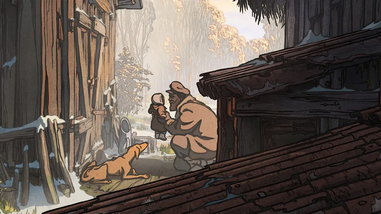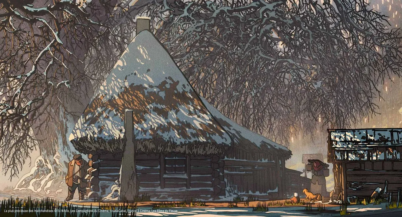The characters were imagined and created by director Michel Hazanavicius and although at first the universe of the film is limited to the lumberjack and his wife - who have no names - little by little, from the appearance of the baby, more characters are added and the story is complicated in unforeseen ways. Because yes, from the beginning we want the woman to keep the baby, to save it, but it will not be easy to pass the child off as her own daughter, and the questions arise: who threw the baby from the train? what will happen when the war is over? what will happen if they discover that the couple has been hiding a sans cœur? La plus précieuse des marchandises begins as a slow, somewhat sad story, which then moves into an emotional and moving narrative to finally explode into a violent climax, a tragic ending and a hopeful epilogue. All of this is enhanced by the animation and the director's choices in showing certain things. Hazanavicius doesn't spare cinematographic resources and manages to make the most of them thanks to the beautiful soundtrack by Alexandre Desplat, a musical genius with 2 Oscars (The Grand Budapest Hotel and The Shape of Water) and a total of 11 nominations for his work in films such as Little Women, Argo, The Imitation Game, Isle of Dogs, The Curious Case of Benjamin Button and Fantastic Mr. Fox, among others. The blend of music, visuals and narrative is a powerful combination that makes this story unforgettable.