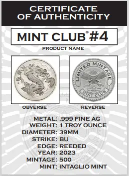 This Mint Club #4 is a recent product of Limited Mintage. It coincides with the Lunar Calendar year 2024: Dragon.