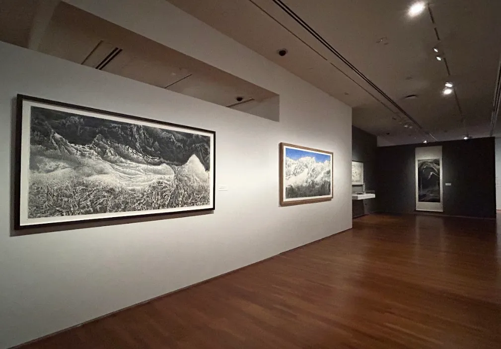 This collection was from when Liu returned to China in the 1980s and visited his homeland, including places rich in natural beauty. He focused on the material nature of ink and paper media using his techniques of tearing paper fibres and steeped-ink to create his portraits of nature.