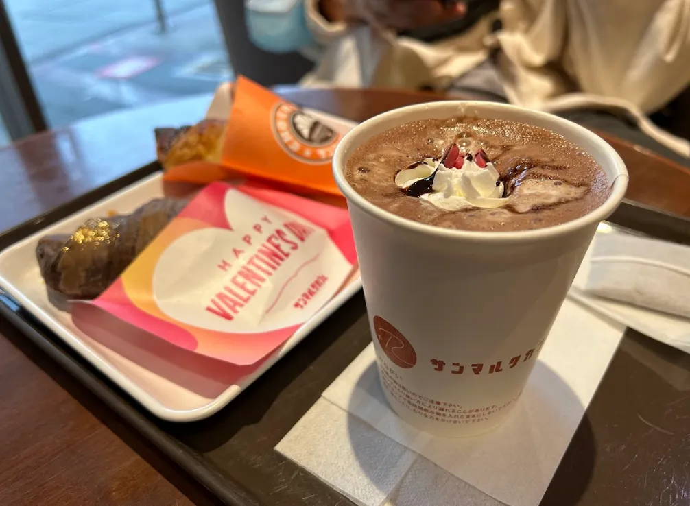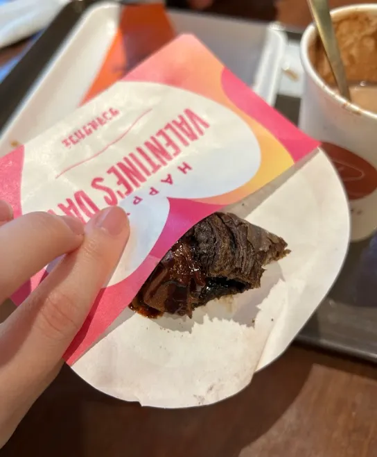They were having a special Valentines promotion and Sean bought a set with two pastries and a hot chocolate drink.