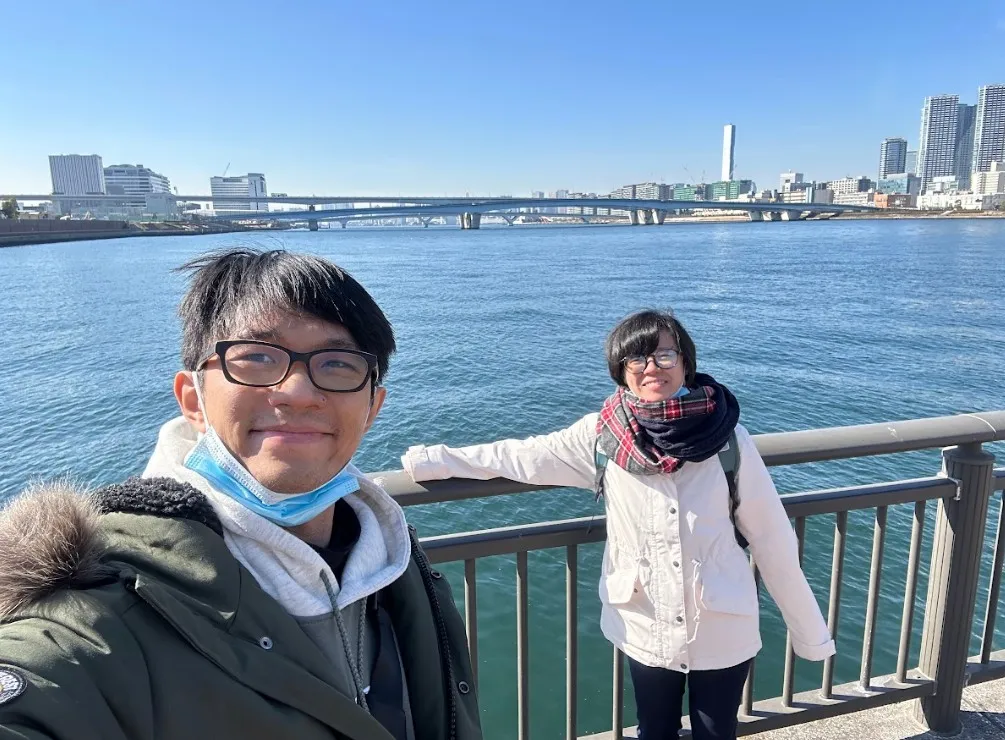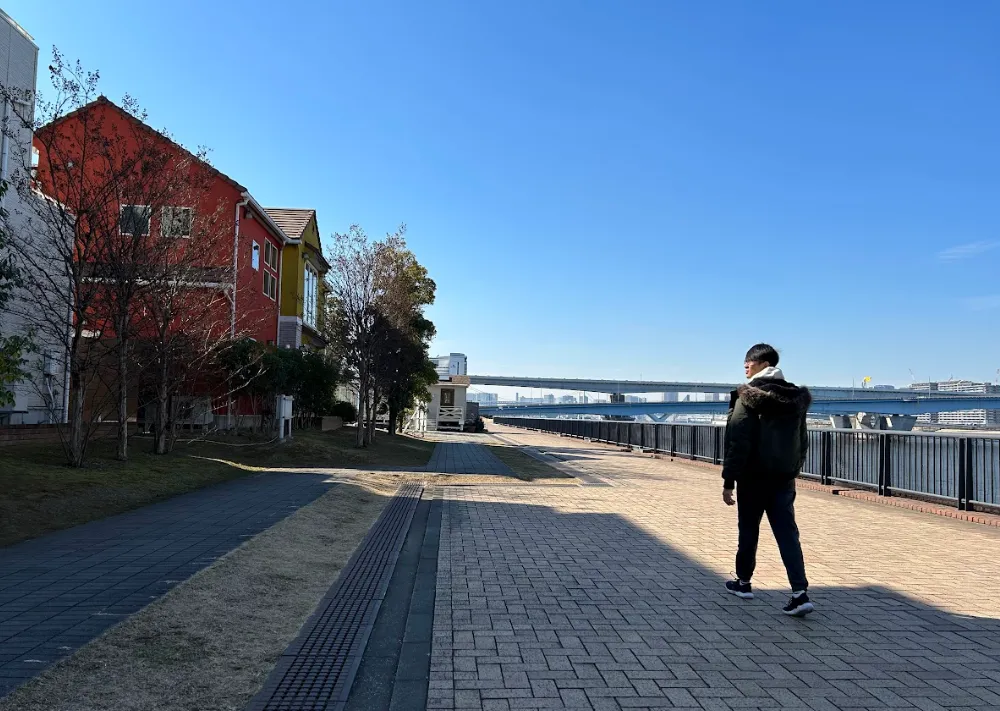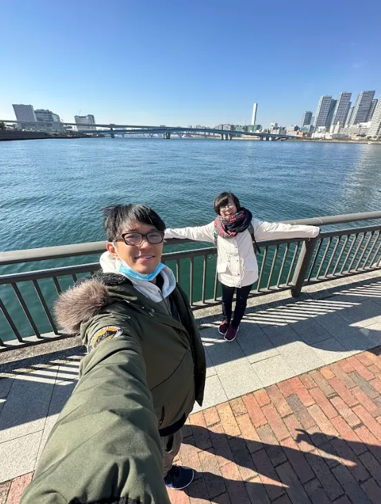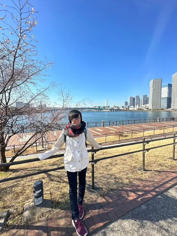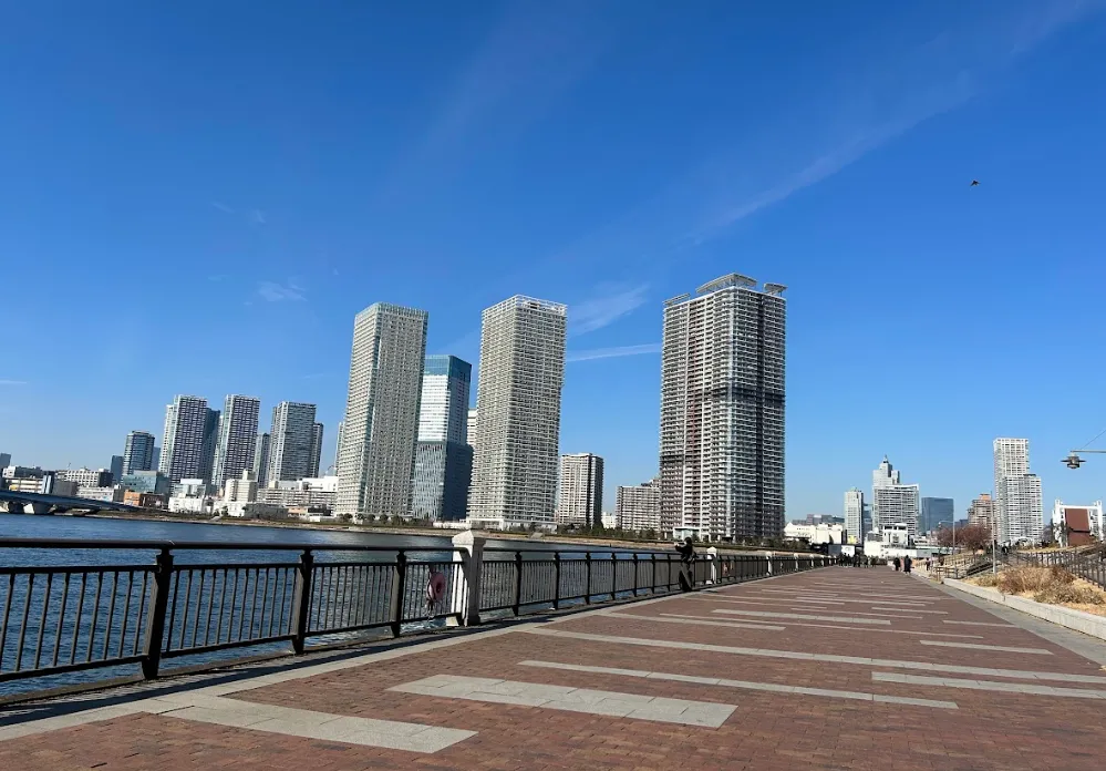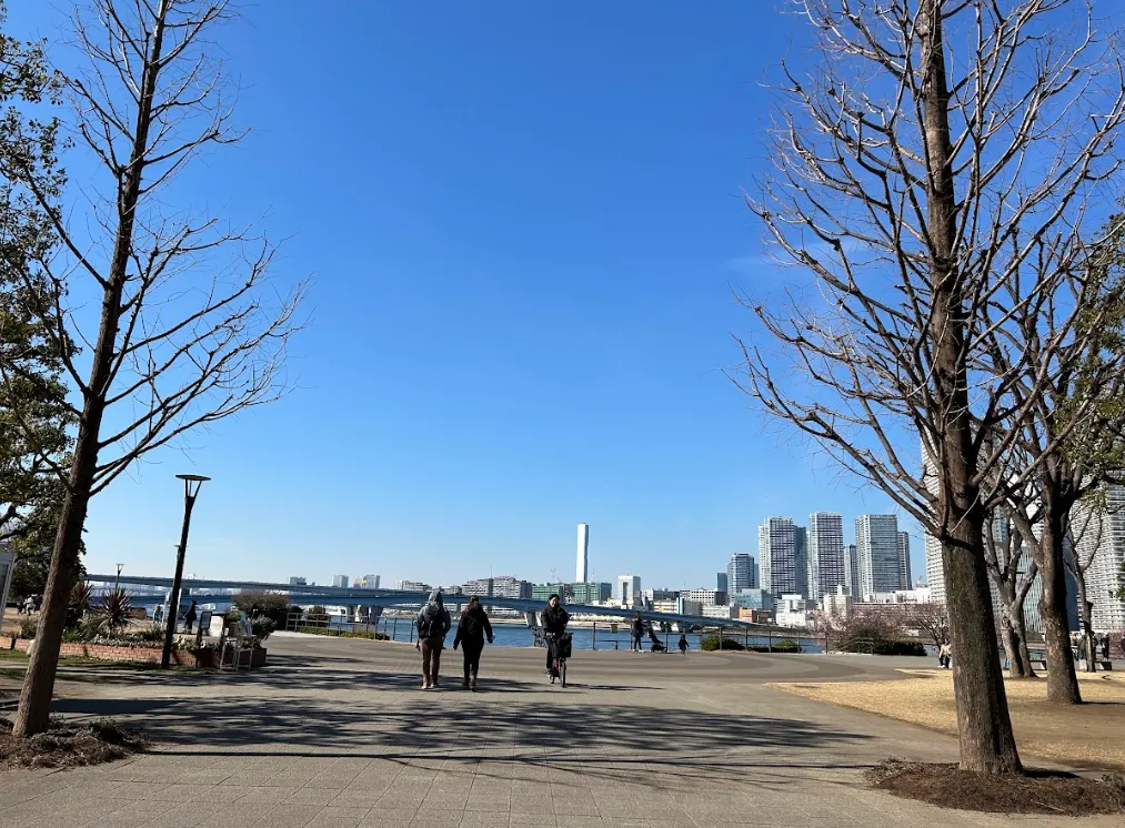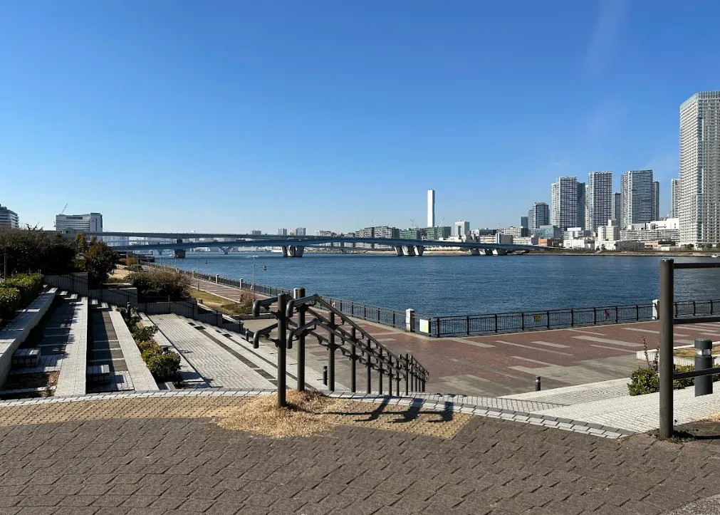 It was nice and breezy here beside the water but we had a stunning view of the Shinonome Bridge from here.