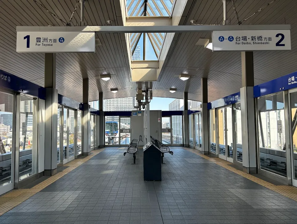 We ended up taking the train to Toyosu station which has something that I've actually never seen before. The train platform has an unused track that is completely covered up! You can tell from the gantries that remain that there used to be another track there.