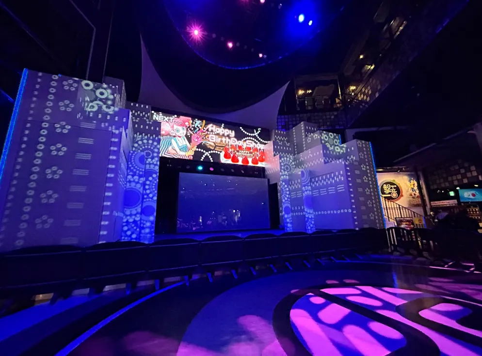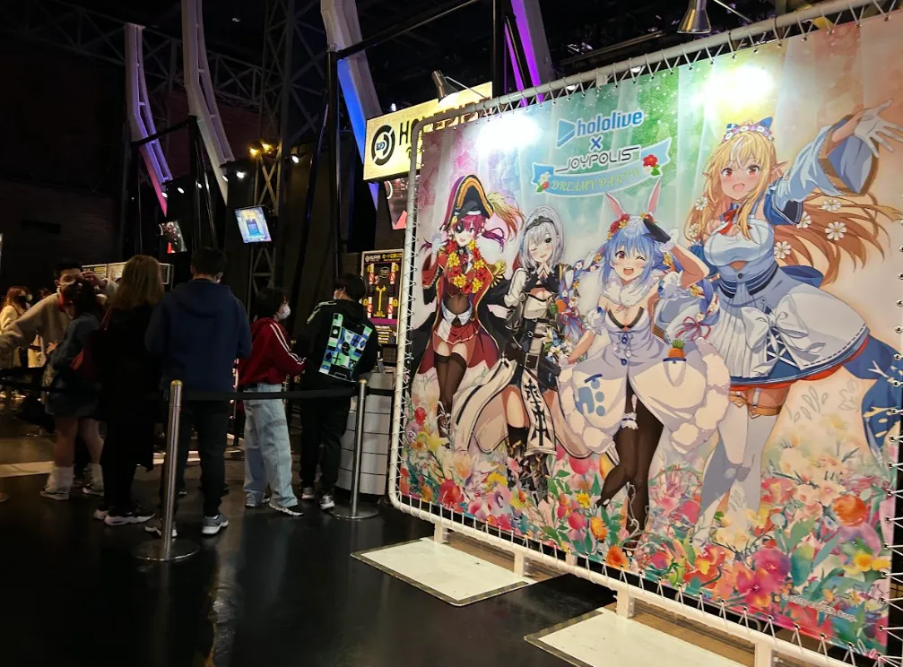 There was a main stage area with lots of rotating spotlights and I think it's where the vtubers would perform for the hololive collab. I assumed the happy birthday banner was for one of them.