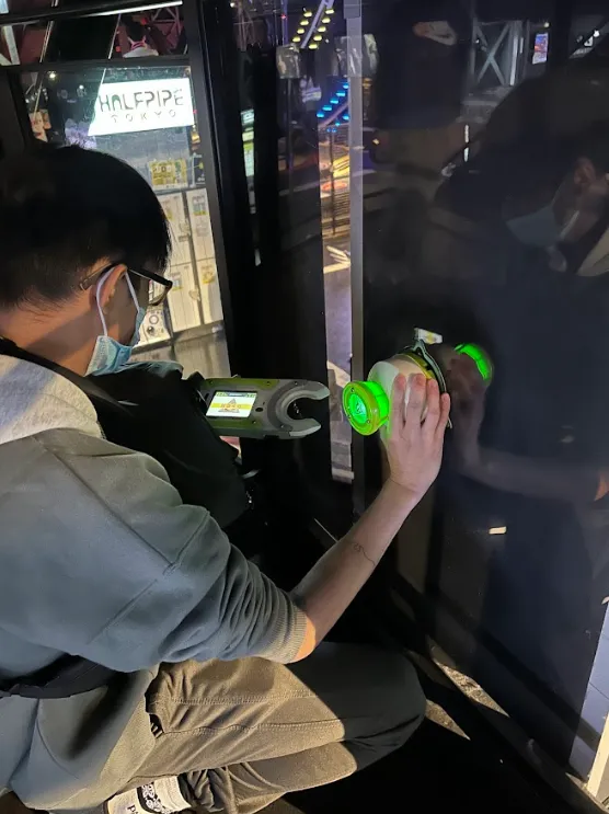 Once we found an emblem we had to use the device and scan it like this until something popped up on the screen.