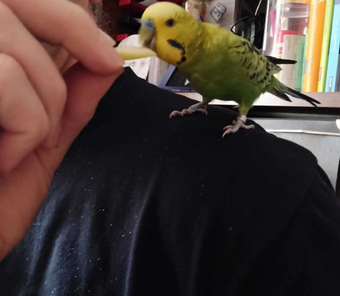 Das Müsli war diesmal besonders lecker, nachdem ich noch eine halbe Zitrone fand, von der ich etwas Saft mit hineinpresste. Ich hatte dabei gar Gesellschaft von dem kleinen Freund, den wir derzeit betreuen dürfen, da wo wir grad sind (Foto). Der hat den Apfel auch sehr gemocht.