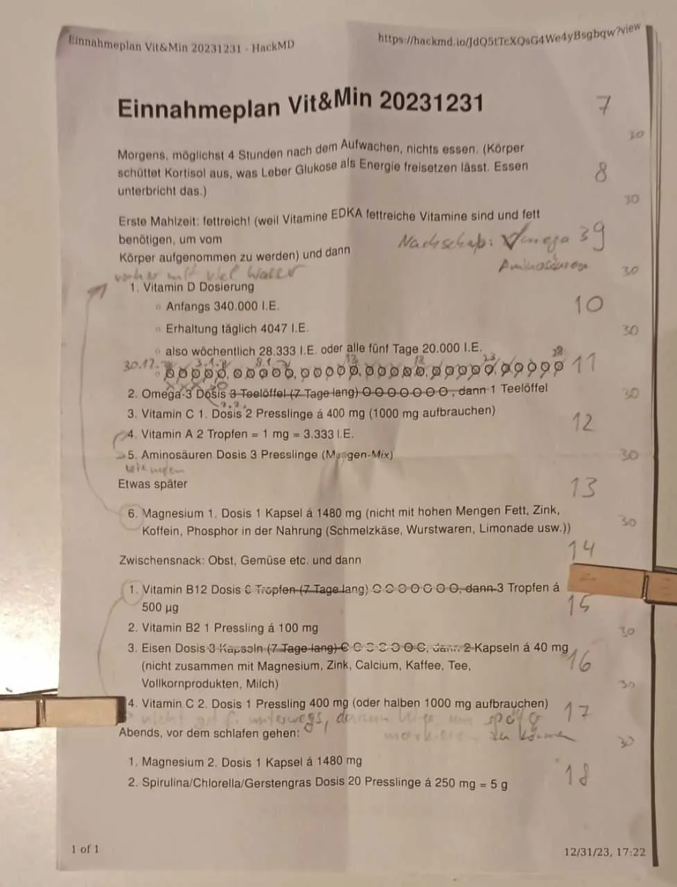 The vitamin D line in the plan is overflowing and a few corrections have been made, which I have now incorporated into a new plan. So much for the rough progress.