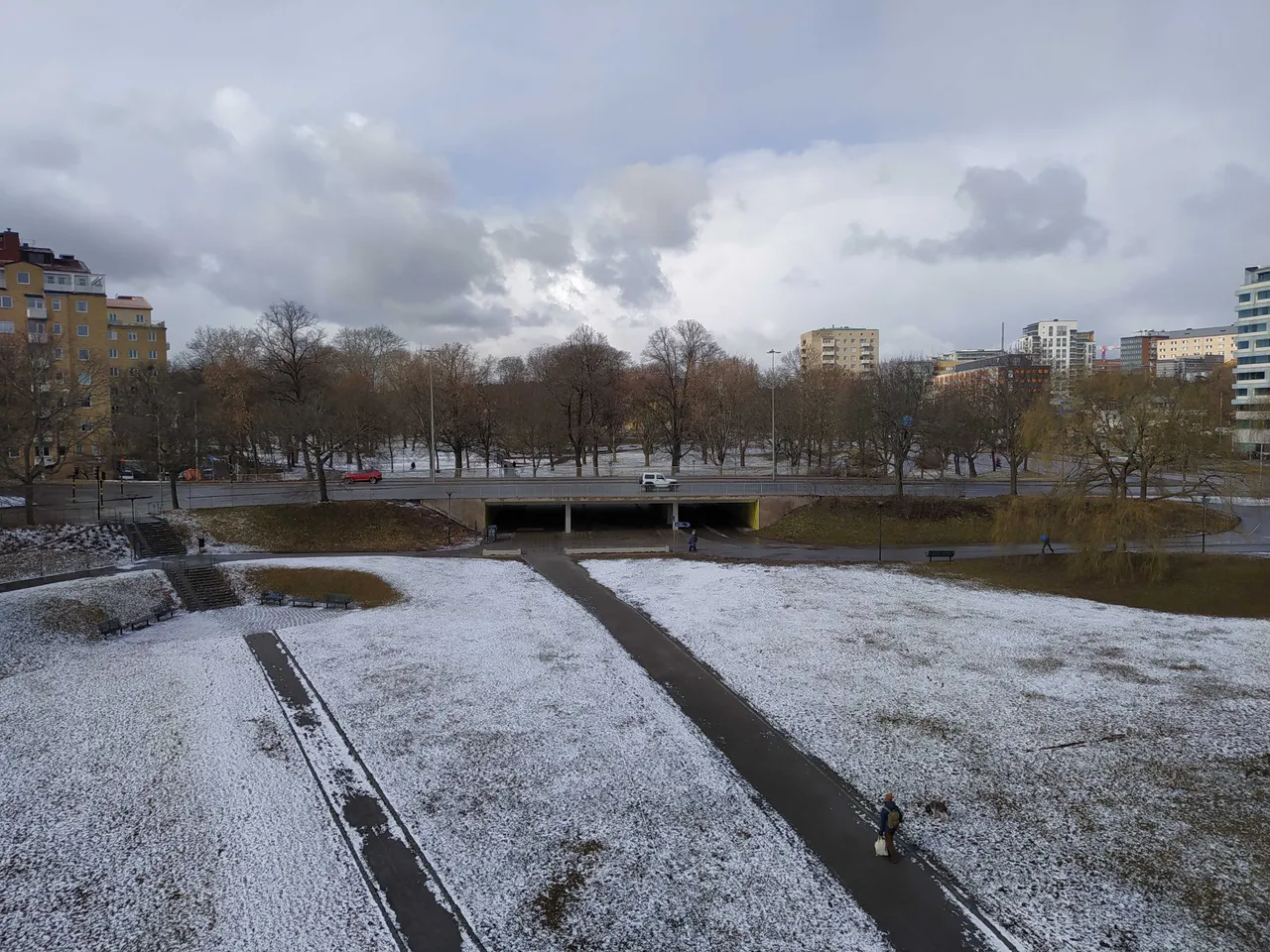 Snow on the ground in the first part of the day.